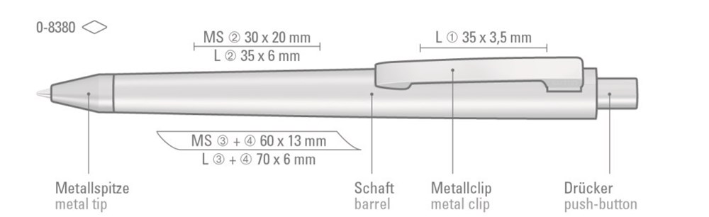 Metall-Druckkugelschreiber mit matt lackiertem Gehäuse, Metallclip, Metallspitze und Drücker matt verchromt.