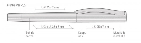 Metall-Rollerball mit gefedertem Clip, in Edelstahl matt gebürstet oder Gun-Optik.