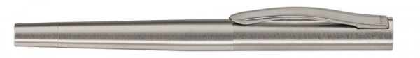 Metall-Rollerball mit gefedertem Clip, in Edelstahl matt gebürstet oder Gun-Optik.