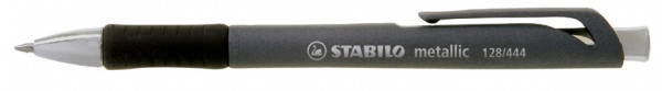 METALLIC-LOOK IN LÄSSIGER MATT-OPTIK. Druckkugelschreiber aus ABS-Kunststoff mit matter Metallic-Lackierung in anthrazit oder schwarz. Spitze und Drücker in Metalloptik, komfortable Santoprene-Griffzone in Schwarz.