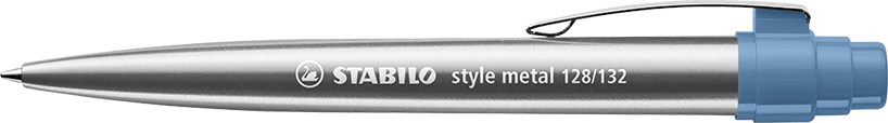 COOLER STYLE IM METALLIC-LOOK. Stylischer Druckkugelschreiber aus silbernem Metall mit Jumbomine und komfortablem, extra breitem Drücker. Edler Metall-Schaft kombinierbar mit Oberteil in 5 Trendfarben.