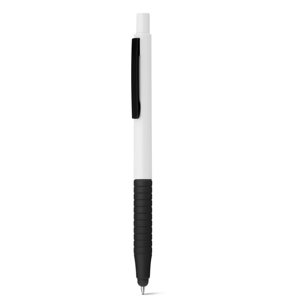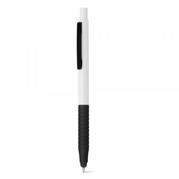 Kunststoffkugelschreiber mit Gummigrip, Metallclip und blauschreibender Mine und mit Funktion "Touch Pen". ø9 x 137 mm