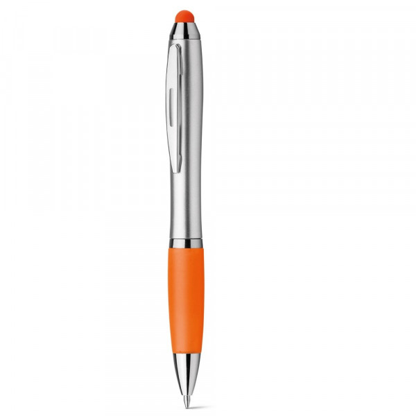 Kunststoffkugelschreiber mit Gummigrip, Metallclip und blauschreibender Mine und mit Funktion "Touch Pen". ø13 x 135 mm
