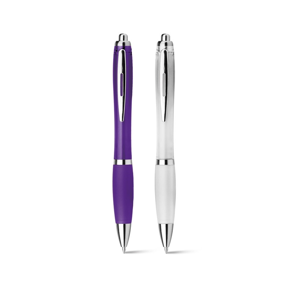 Kunststoffkugelschreiber mit Gummigrip und Metallclip, blauschreibende Mine. ø13 x 140 mm