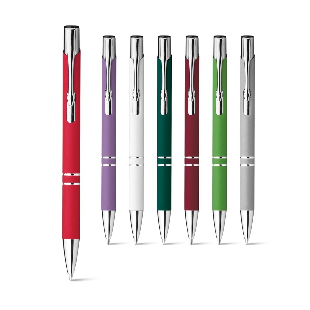 Metallkugelschreiber mit blauschreibender Mine und gummierter "SOFT TOUCH" Oberfläche. ø10 x 138 mm