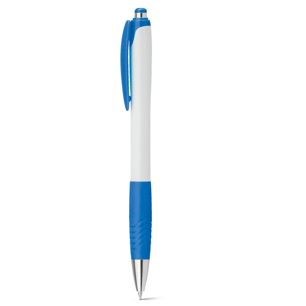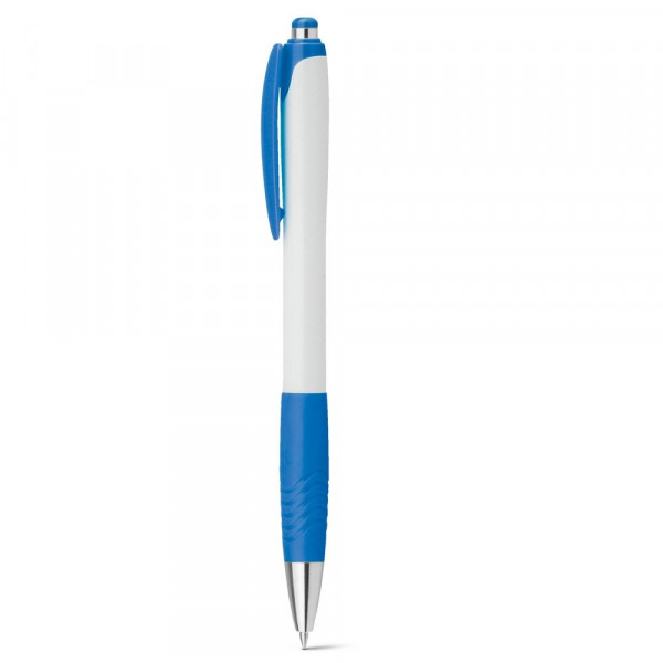 Kunststoffkugelschreiber mit Gummigrip und blauschreibender Mine. ø11 x 138 mm