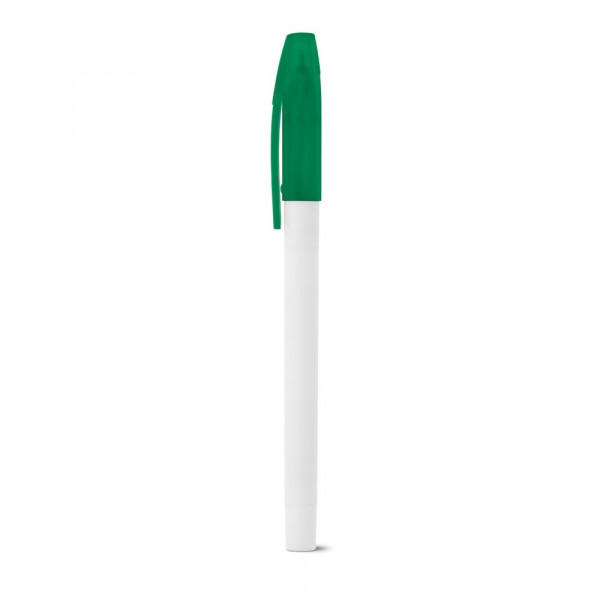 Kugelschreiber aus PP mit blauschreibender Mine und weissem Körper. Farbige Kappe mit Clip. ø10 x 142 mm