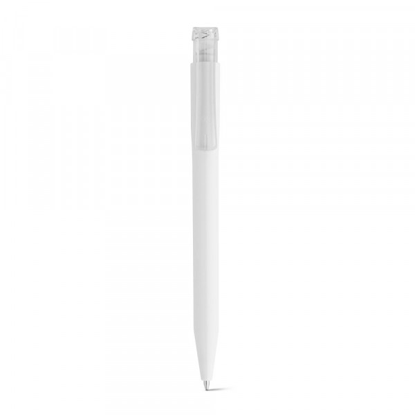 Kugelschreiber aus ABS mit blauschreibender Mine, farbigem Clip und weissem Körper. ø11 x 136 mm