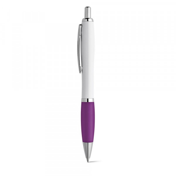 Kugelschreiber aus Metall mit blauschreibender Mine, Clip, Gummigriff und weissem Körper. ø12 x 140 mm