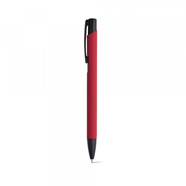 Kugelschreiber aus Aluminium mit blauschreibender Mine, farbigem Körper und gummierter Oberfläche. ø10 x 137 mm