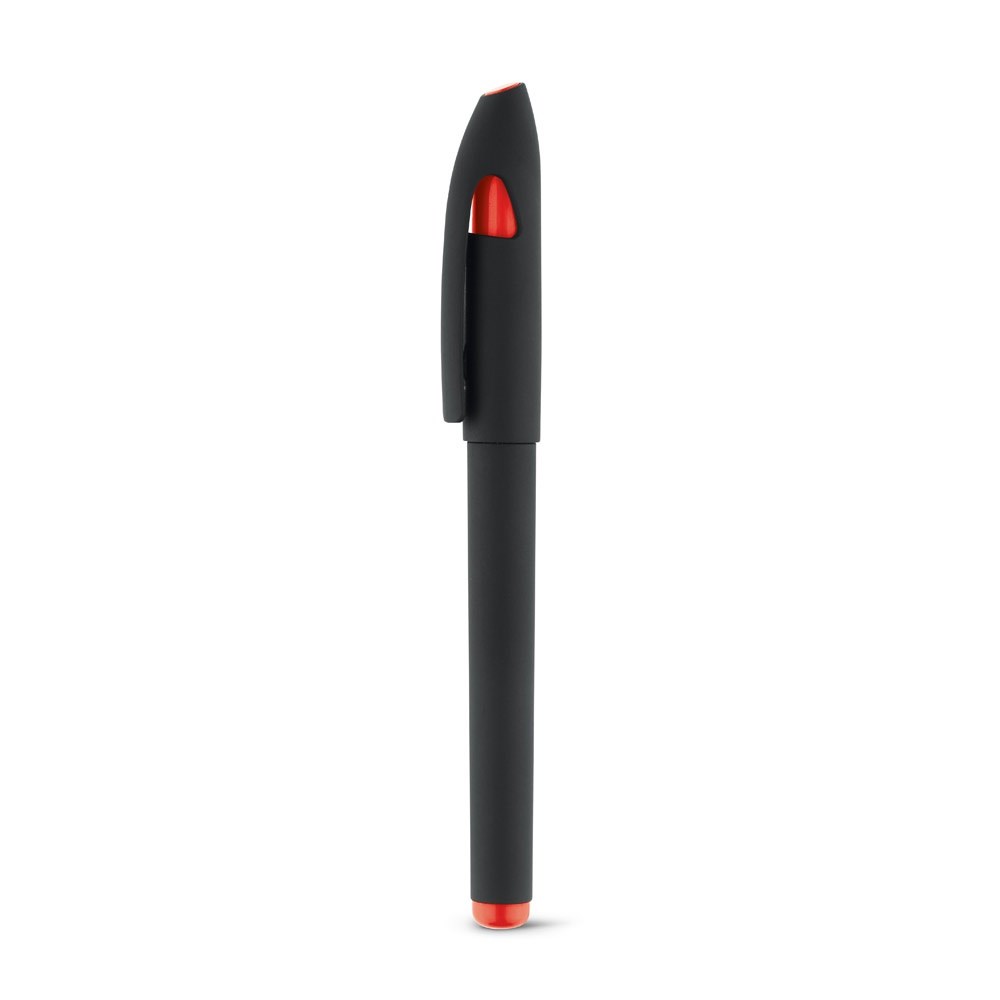 Kugelschreiber aus ABS mit Kappe und Clip mit schwarzschreibender Mine, gummierter Oberfläche, farbigen Details und rutschfester Oberfläche. ø13 x 143 mm