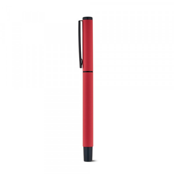 Rollerball aus Aluminium mit Clip und gummierter Oberfläche. ø10 x 136 mm