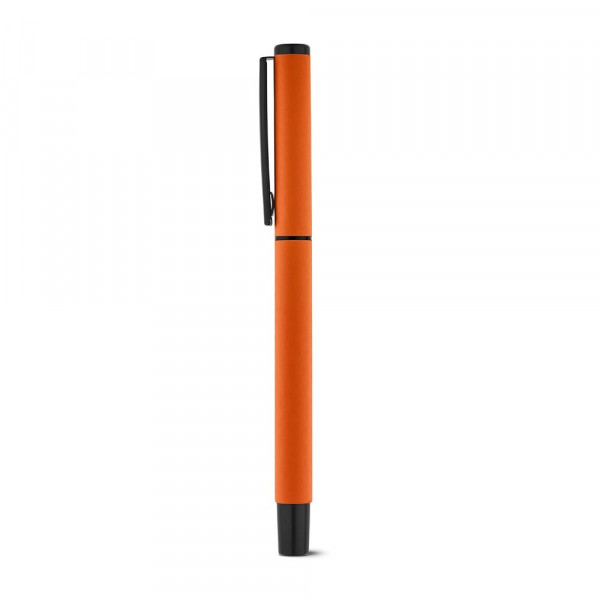 Rollerball aus Aluminium mit Clip und gummierter Oberfläche. ø10 x 136 mm