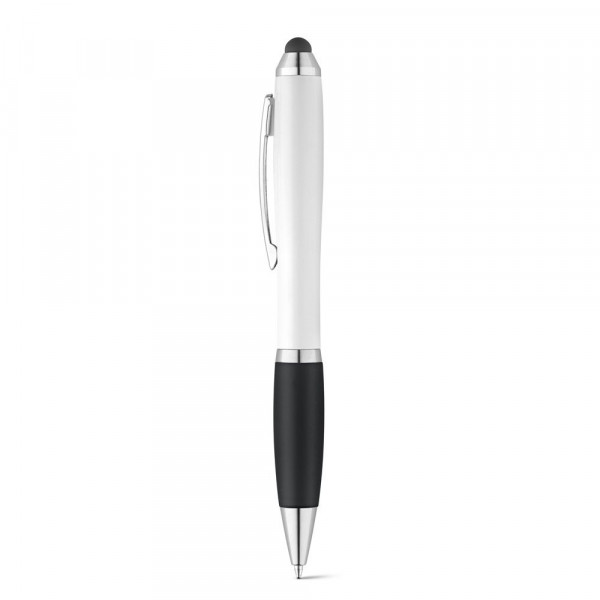 Kugelschreiber mit Metallclip und Drehmechanismus, Gummigriff und Touchpen-Funktion, die es ermöglicht auf Displays zu tippen. ø11 x 135 mm