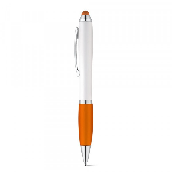 Kugelschreiber mit Metallclip und Drehmechanismus, Gummigriff und Touchpen-Funktion, die es ermöglicht auf Displays zu tippen. ø11 x 135 mm