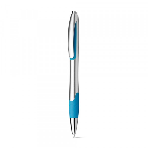Kugelschreiber mit blauschreibender Mine, Gummigriff, Clip und farbige Details. ø11 x 140 mm
