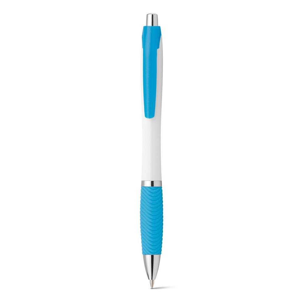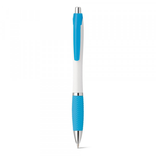 Kugelschreiber mit blauschreibender Mine und silbernen Details. Clip und Anti-Rutschgriff erhältlich in verschiedenen Farben. ø12 x 142 mm