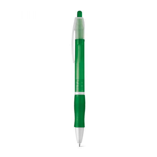 Kugelschreiber transparent mit blauschreibender Mine, Clip und Gummigriff. ø10 x 145 mm mehr