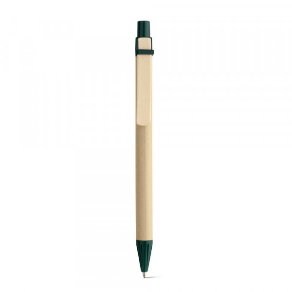 Kugelschreiber aus Kraftpapier mit schwarzschreibender Mine und Clip aus Holz. ø9 x 140 mm
