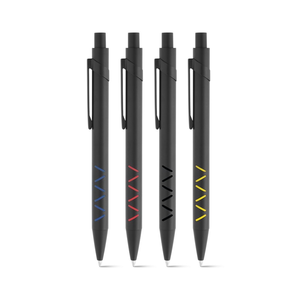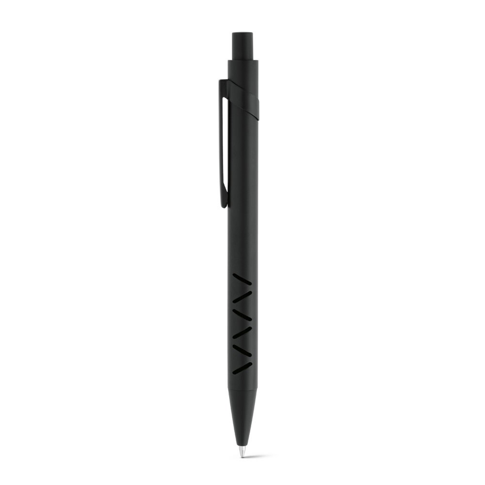 Kugelschreiber. Aluminium. Mit einem Clip und Klickmechanismus. Einem Gummigriff und schwarzschreibender Mine. ø10 x 139 mm
