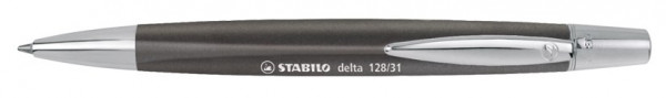 WERTET JEDEN SCHREIBTISCH AUF. Drehkugelschreiber und Drehbleistift mit Dreikant-Aluminiumschaft. Blaue, schwarze oder silbermatte Lackierung, Beschläge silbermatt satiniert. Trendmodell in mattem Anthrazit oder weißer Hochglanzlackierung mit Metallbeschlägen.