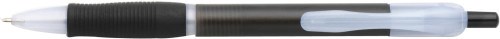 Kugelschreiber aus Kunststoff, transparenter Clip und Spitze, gummierte Griffzone, schwarze Mine.