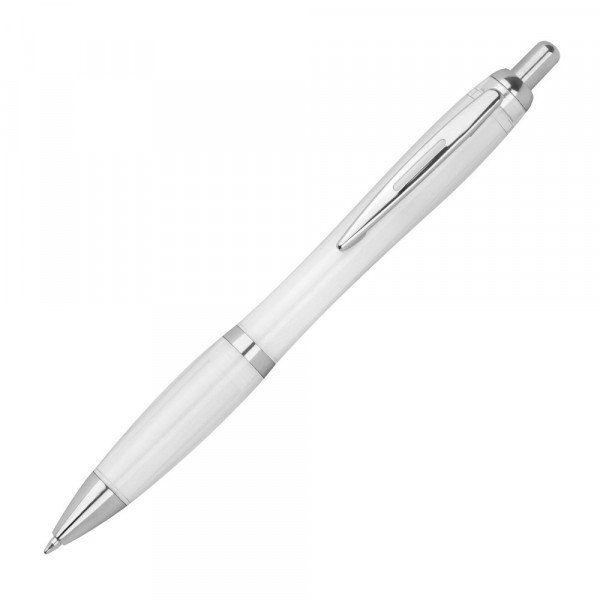Klassischer Kugelschreiber aus recyceltem PET, transparent mit silbernen Applikationen,... mehr