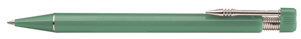 Druckkugelschreiber mit vernickeltem Metallclip sowie beweglichem Drückerkopf auf vernickelter Metallfeder.