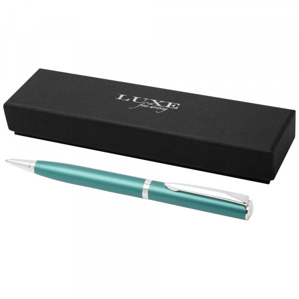 Leichter Kugelschreiber in exklusivem Design. Erhältlich in drei Sonderfarben, die sich auf die verschiedenen Tageszeiten beziehen: „Sunset Orange“ für den Morgen, „Dusk Blue“ für den Abend und „Green Ray“ für die Zeit dazwischen. Inkl. blauer Ersatzmine, verpackt in einer „LUXE“ Geschenkbox.