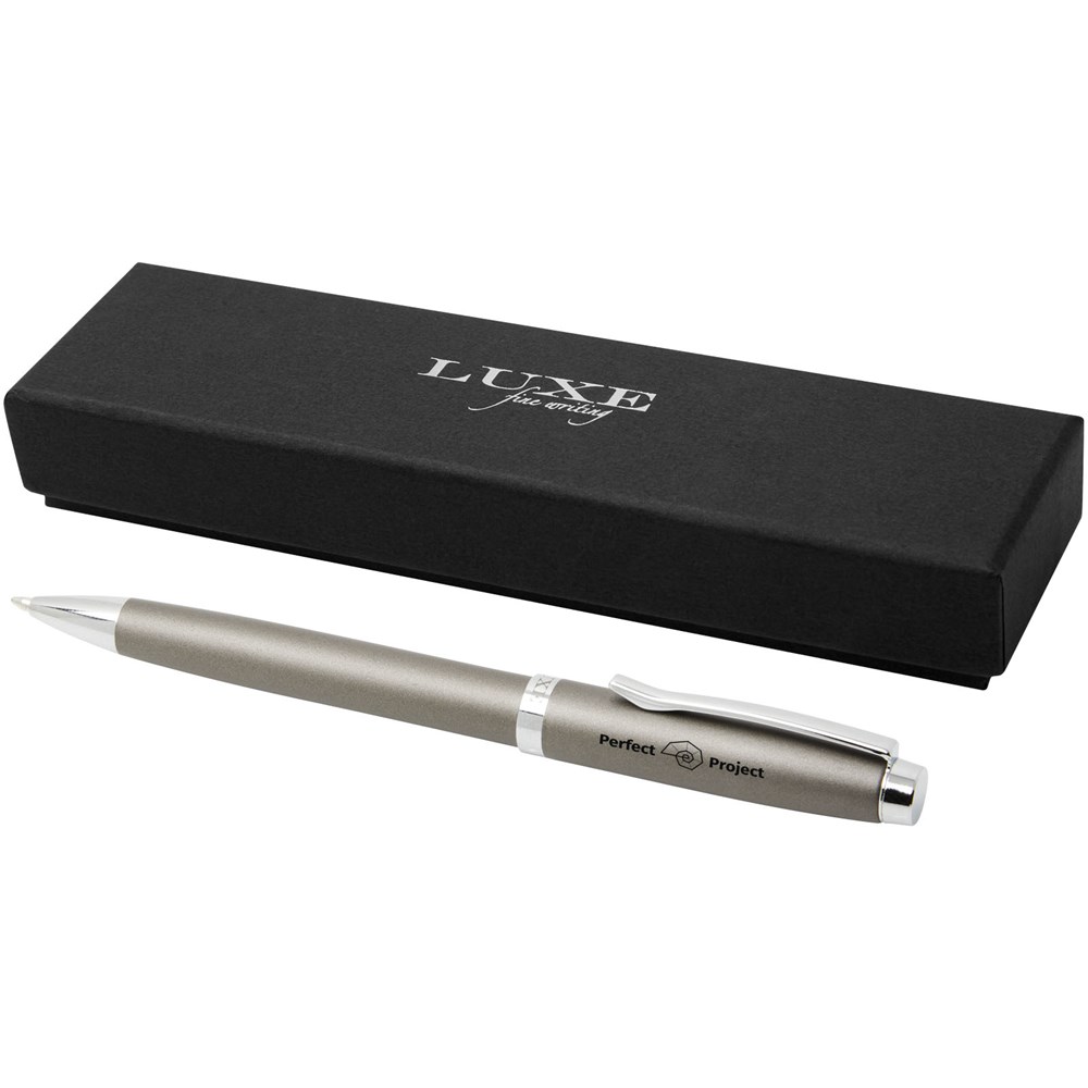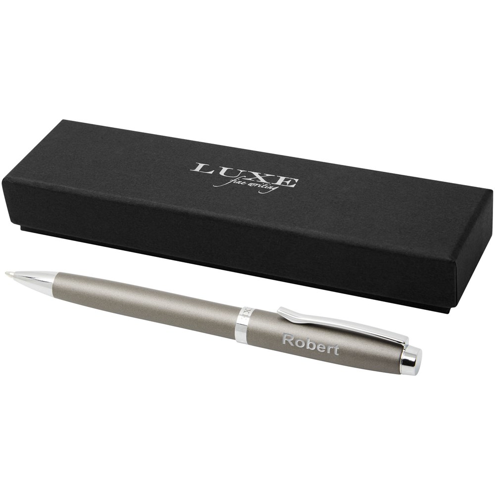 Eleganter Kugelschreibe rin exklusivem Design, erhältlich in drei Farben. Inkl. schwarzer Ersatzmine und verpackt in einer „LUXE" Geschenkbox.