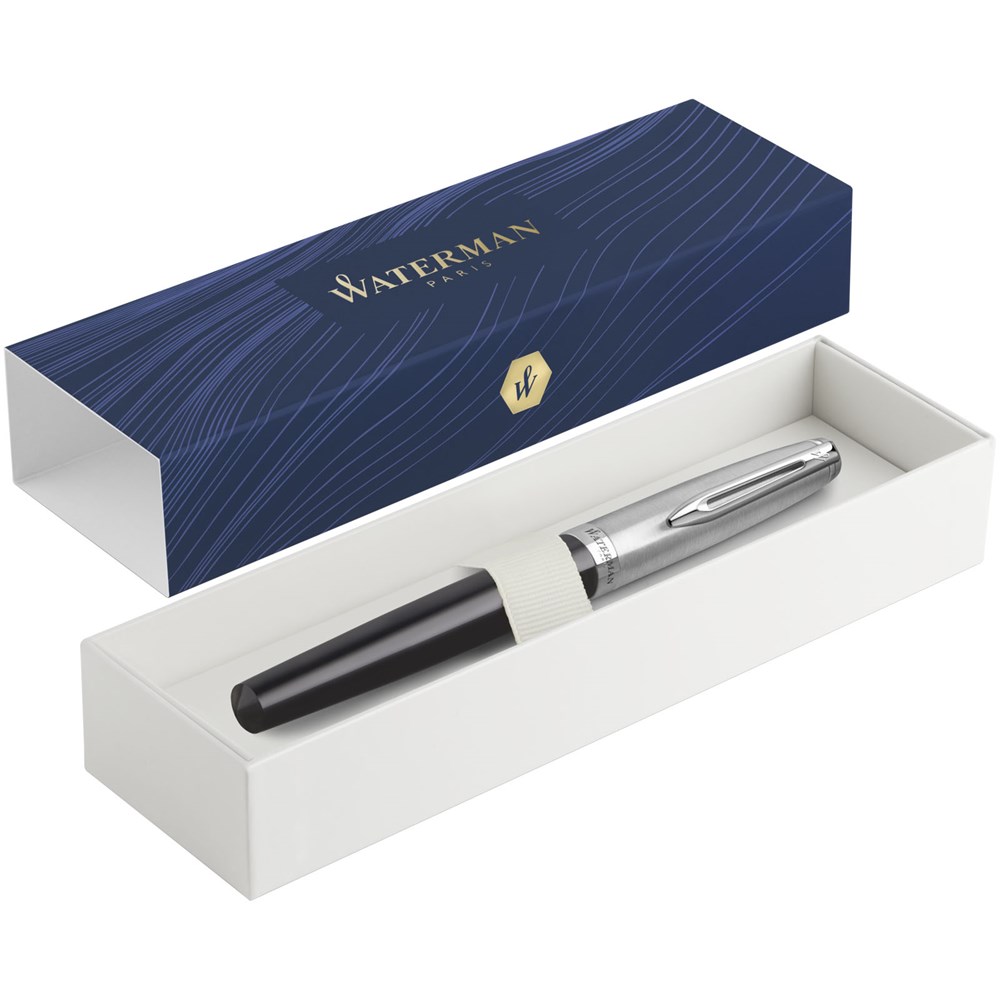 Inspiriert von der ikonischen Pariser Skyline vermitteln die modernen und luxuriösen Lackoberflächen von Emblème einen mühelosen Stil und spiegeln die französische Eleganz wider. Die neue Kollektion wurde mit dem hauseigenen Know-how von Waterman in Frankreich entworfen und gefertigt. Die Kombination aus einer Edelstahlkappe mit edlen Schaftfarben verleiht der neuen Kollektion Originalität und Modernität. Die Silhouette wird zu einer neuen Ikone kühner Eleganz im Portfolio von Waterman. Exklusives Design. Auch als Tintenroller erhältlich. Wird in einer Waterman Geschenkbox geliefert.