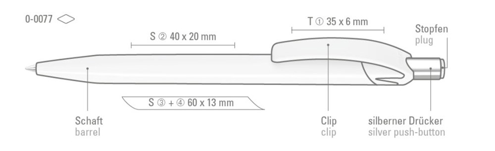 Druckkugelschreiber mit glänzend gedecktem Gehäuse und Drückerstopfen. Drücker in silber... mehr