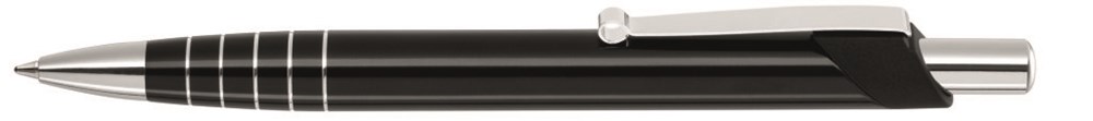 Metalldruckkugelschreiber mit silbernen Zierringen im Schaft, elastischer Metallclip. Spitze und... mehr