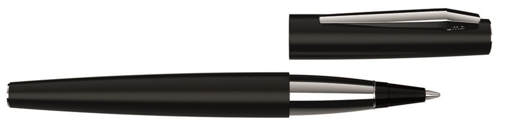 Metall-Patronenroller mit matt lackiertem Gehäuse. Metallclip, Spitze und Stopfen glanzverchromt. Das Patronen-Roller-System arbeitet nach dem Prinzip des Füllhalters und kann mit Standard-Tintenpatronen nachgefüllt werden.