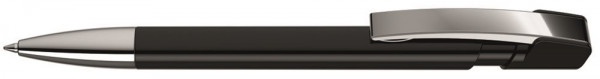 Druckkugelschreiber mit gedeckt glänzendem Gehäuse in uni weiß oder schwarz. Metallclip und schwere Metallspitze glanzverchromt.