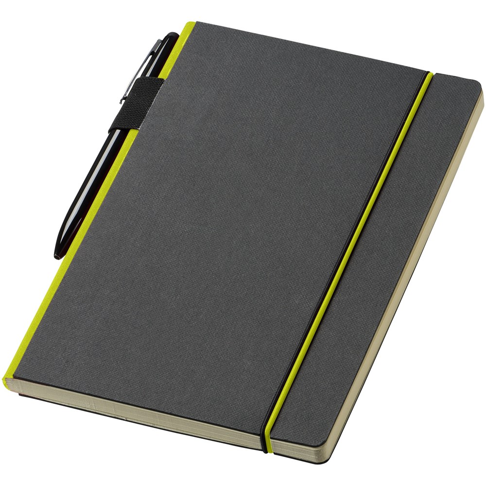 Ein farbiger Rücken und ein Gummiverschluss geben diesem klassischen schwarzen... mehr