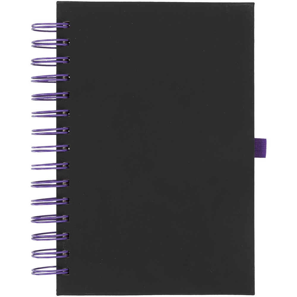 Eine Neuheit in unserem beliebten Notizbuchsortiment. Dieses vielseitige neue Notizbuch hat einen glatten schwarzen PU-Einband mit Spiraldraht in kräftigen Farben und passender Stiftschlaufe. Mit 160 Blatt (70 g/m²) cremefarbigem liniertem Papier.