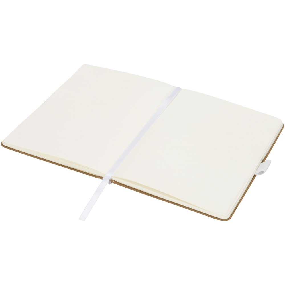 Notizbuch aus Pappe im natürlichen Look mit Stoffrücken. Mit 80 blanko Blättern (70 g/m²), Leseband und Stiftschlaufe.