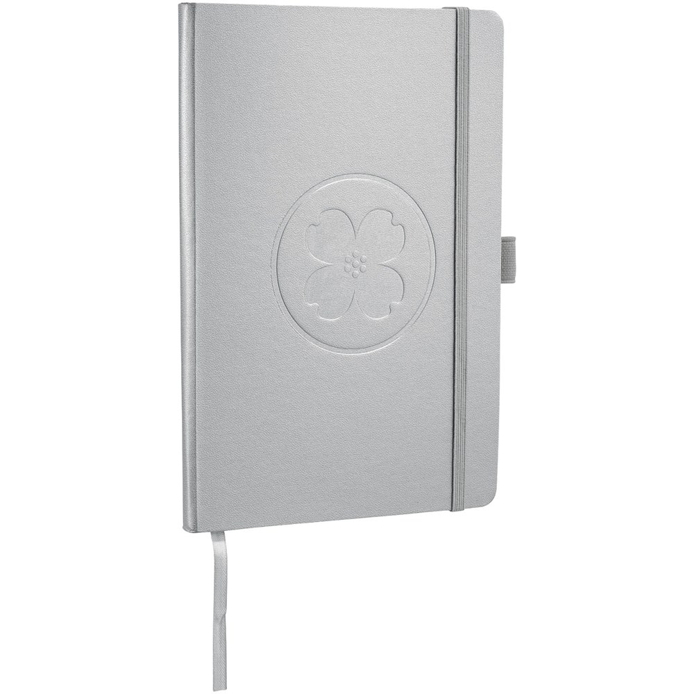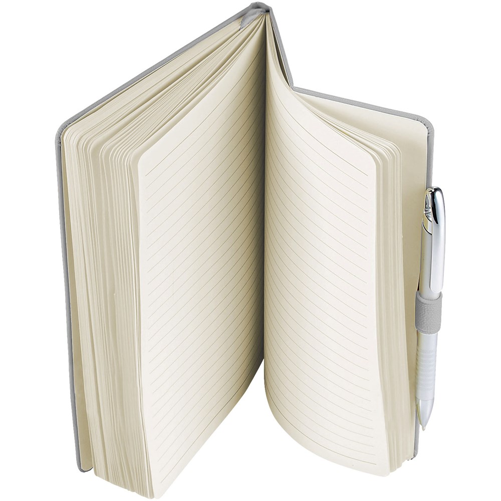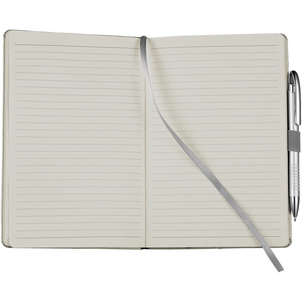 A5 Notizbuch mit rückseitiger Falte für einfaches Umblättern. Inklusive Gummiband zum Verschließen, Leseband und 80 Blatt (80 g), liniertem Papier.