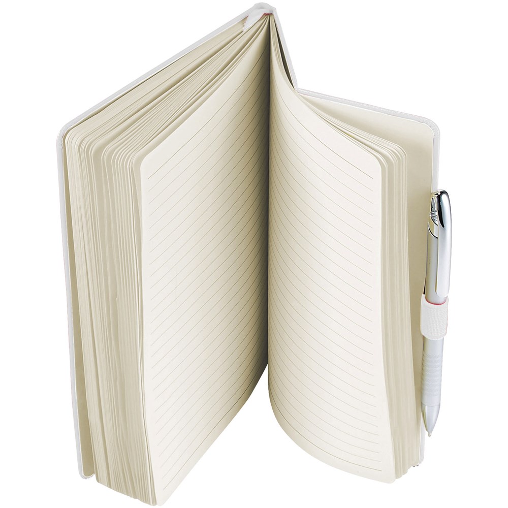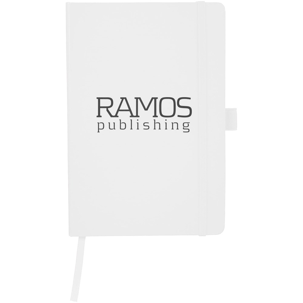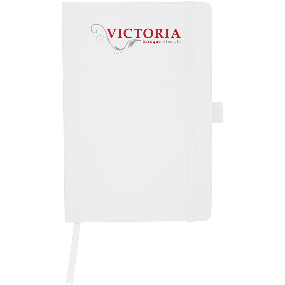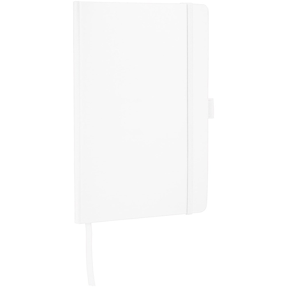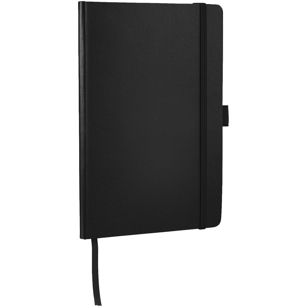 A5 Notizbuch mit rückseitiger Falte für einfaches Umblättern. Inklusive Gummiband zum Verschließen, Leseband und 80 Blatt (80 g), liniertem Papier.