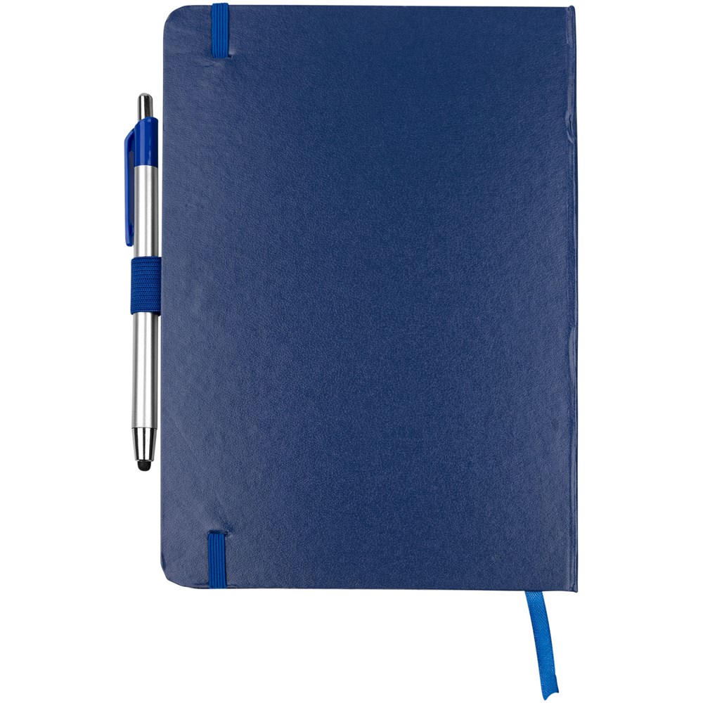 Gebundenes Notizbuch mit Gummibandverschluss und Leseband in passender Farbe. Mit Stylus Kugelschreiber aus Kunststoff und 80 Blatt (70 g/m²).