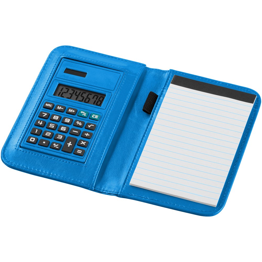 Notizbuch mit 8 stelligem Rechner und A6 Notizbuch mit 20 Blatt (70 g/m²) liniert und Stiftschlaufe. Batterie mitgeliefert und eingelegt.