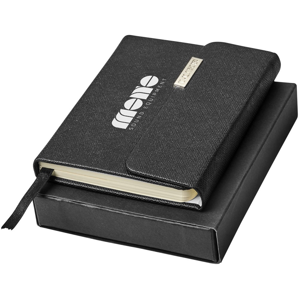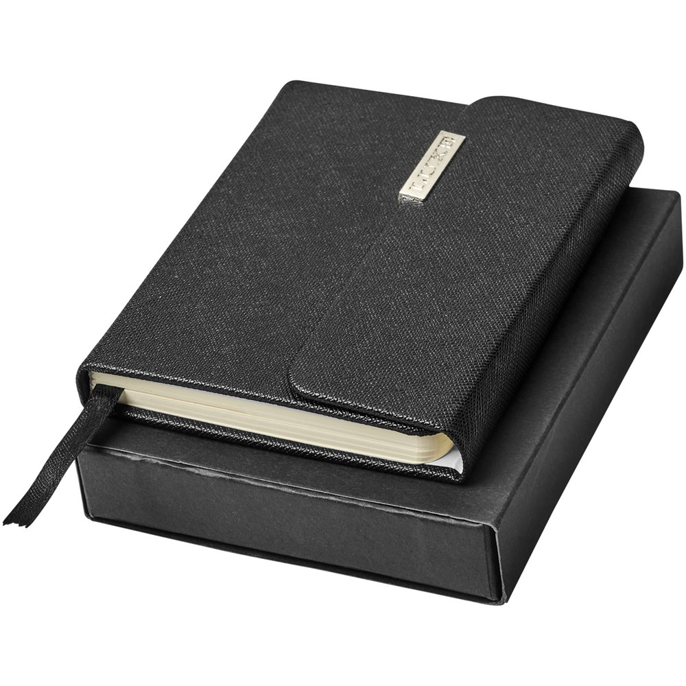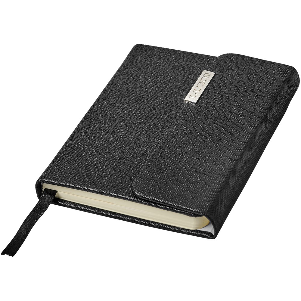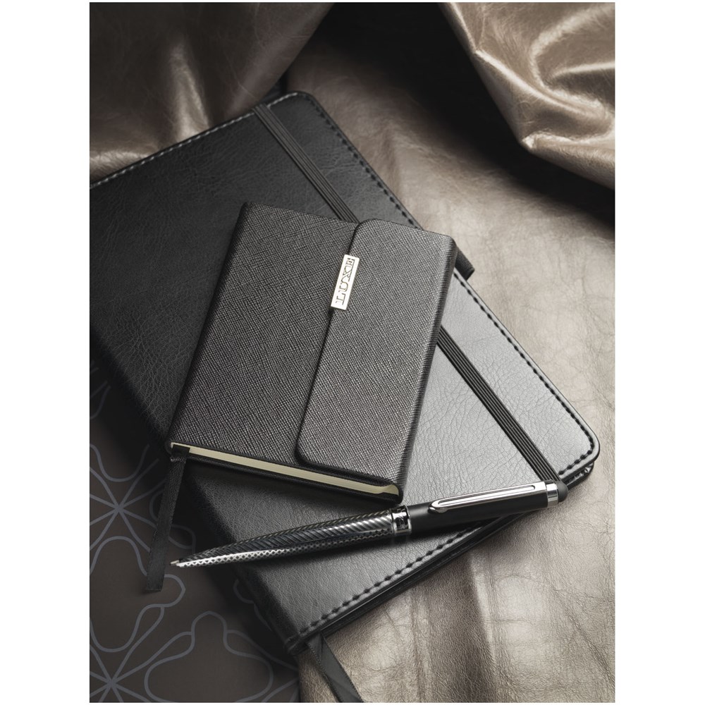 Notizbuch im Safran-Stil im Taschenformat, angeboten in einer 'Luxe'-Hülle. Das Notizbuch verfügt über 80 Blatt cremefarbenes liniertes Papier und ein Band-Lesezeichen.