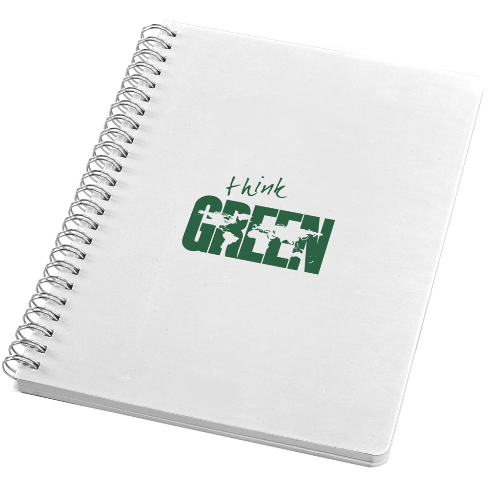 A5 Spiralnotizbuch mit PP Cover und 64 Blatt cremefarbigem, liniertem Papier (70 g/m²).