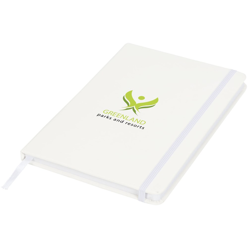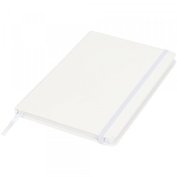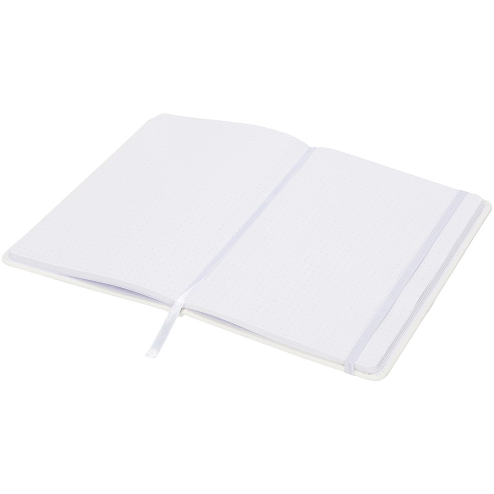 A5 Notizbuch mit farblich passendem elastischen Verschluss und Leseband. 96 Blatt (60 g/m²), gepunktet.