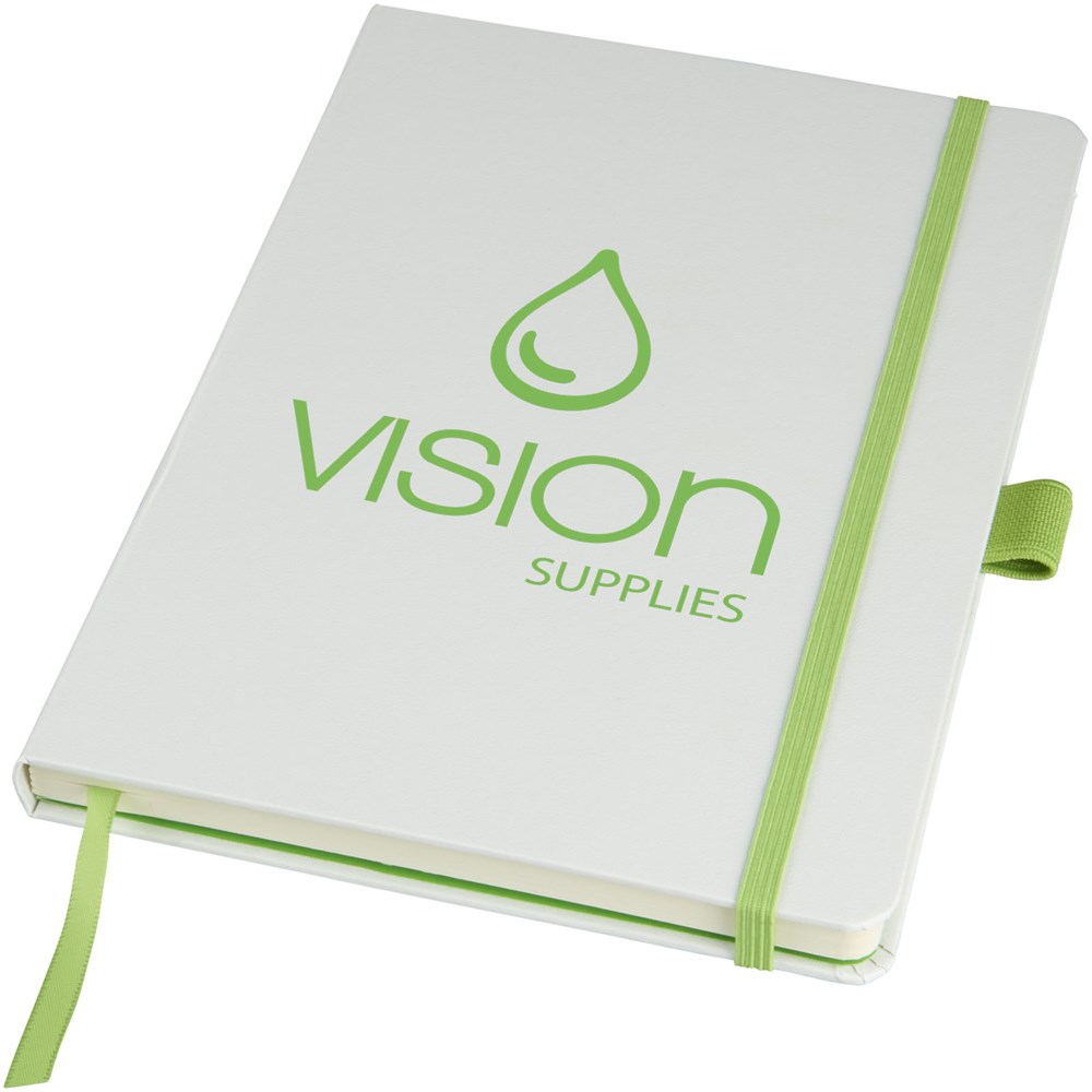 Hardcover Lifestyle Notizbuch (A5) für den kreativen Profi und seine Notizen, Skizzen oder Kekritzel. Das verschiedenfarbige Papier mit farbig passendem, elastischen Verschluss und Farbbandmarker verleiht dem Notizbuch einen extra frischen Reiz. Weitere Eigenschaften sind 40 Blatt (80 g/m²) cremefarben, liniert und 40 Blatt (80 g/m²) blank sowie eine Dokumententasche, um lose Noizen zu verstauen. Verpackt in einer weißen Hülle.