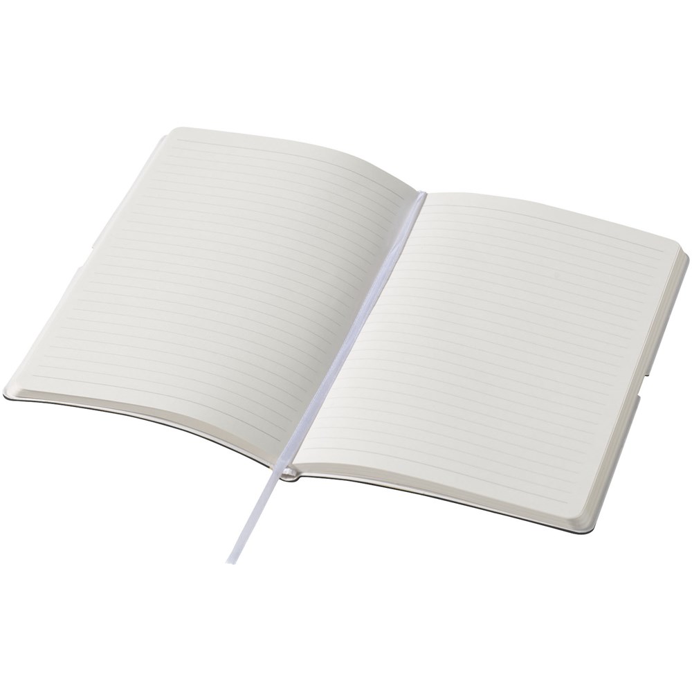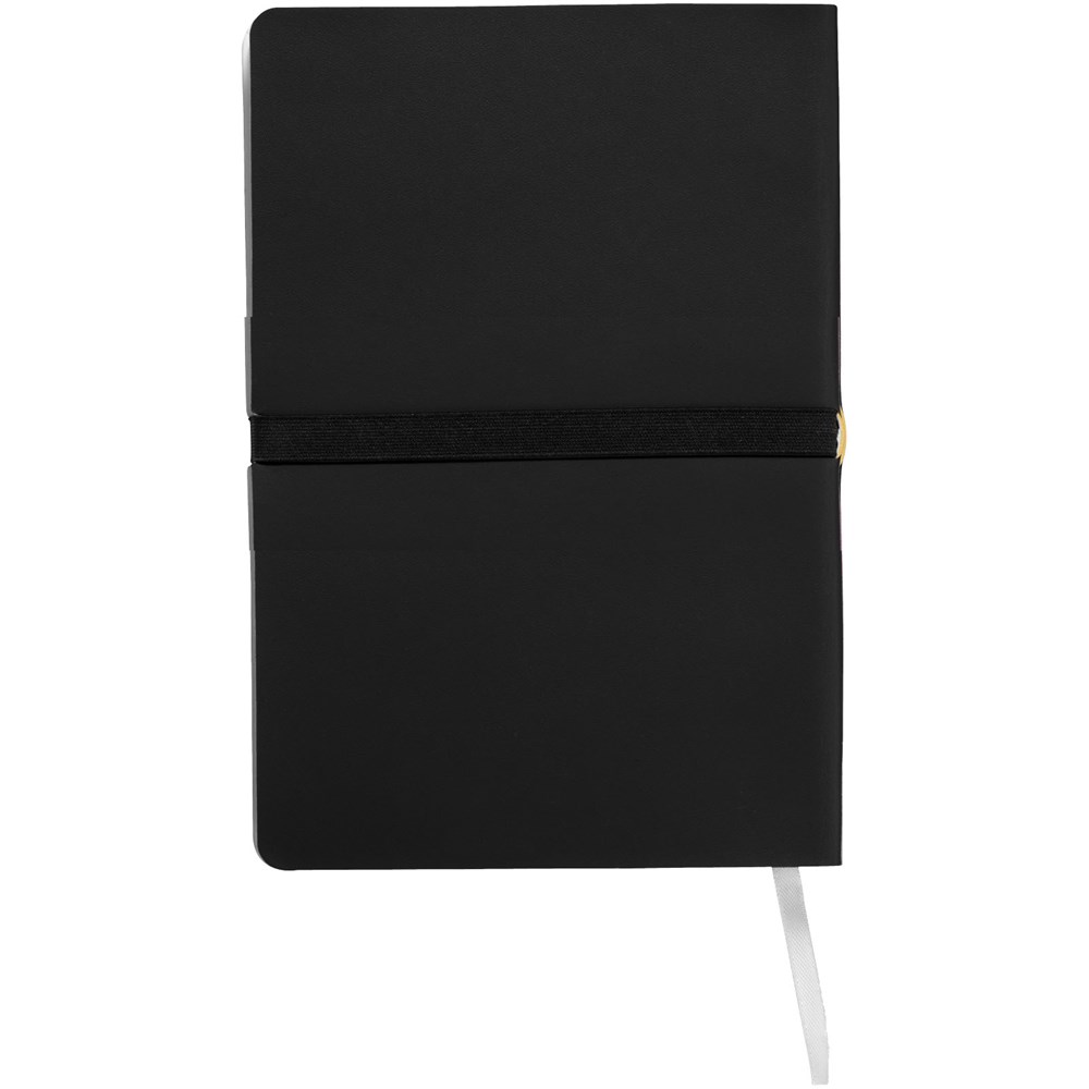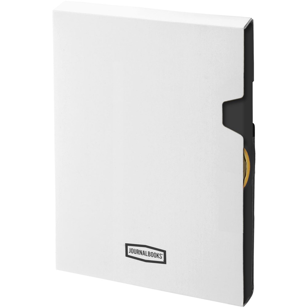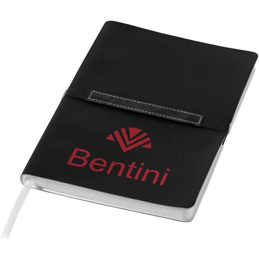 Dieses intelligent gestaltete Notizbuch (A5) bietet dank eines stabilen, am Rücken verbundenen Gummibands mit speziellem Werbeanbringungsbereich ganz neue Möglichkeiten für die Werbeanbringung. Mit 96 Blatt (80 g/m²) liniert. In einer Journalbooks Geschenkhülle verpackt.