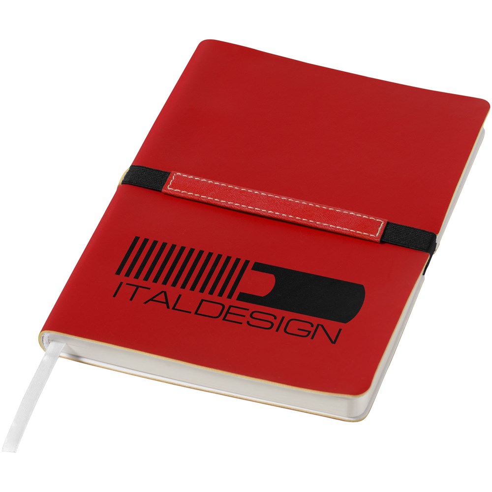 Dieses intelligent gestaltete Notizbuch (A5) bietet dank eines stabilen, am Rücken verbundenen Gummibands mit speziellem Werbeanbringungsbereich ganz neue Möglichkeiten für die Werbeanbringung. Mit 96 Blatt (80 g/m²) liniert. In einer Journalbooks Geschenkhülle verpackt.