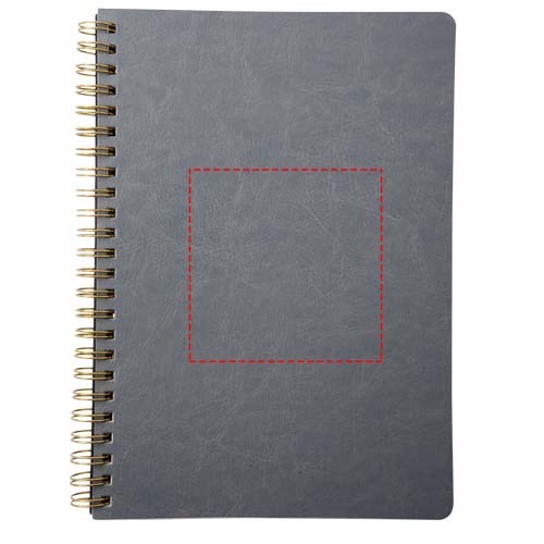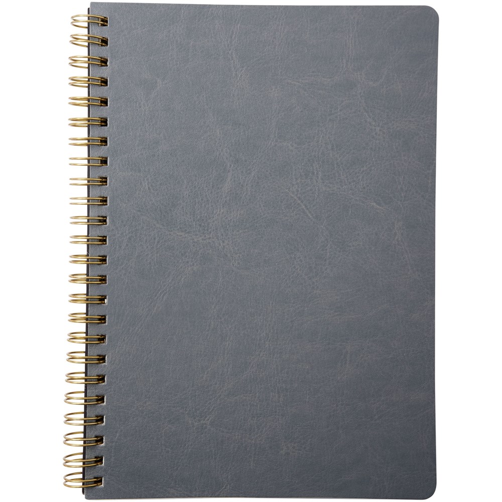 Kalender mit Spiralbindung im Lederlook, A5 mit Rindsleder-Thermo-PU und abgerundeten Ecken. Die Notizbuchhülle (15 x 21 cm) besteht aus 96 Blatt cremefarbenem, liniertem Papier in 70 g/m2.