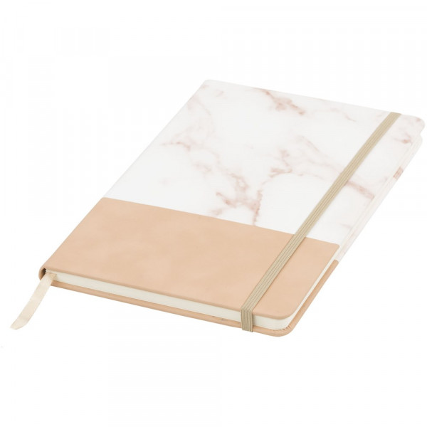 A5 Notizbuch mit Marmormuster, passendem Gummi und Band. Enthält 80 Blatt (70 g/m²) liniertes Papier.